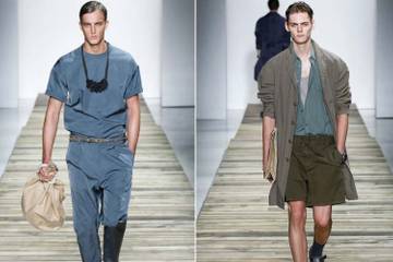 Een belangrijk thema in de Amerikaanse mannenmode: hoe hoog kunnen de shorts worden. Shorts zijn het ultieme symbool van casual mode, maar de korte broeken lijken hun weg te vinden naar de luxe industrie. In New York wordt het kledingstuk gecombineerd met blazers.