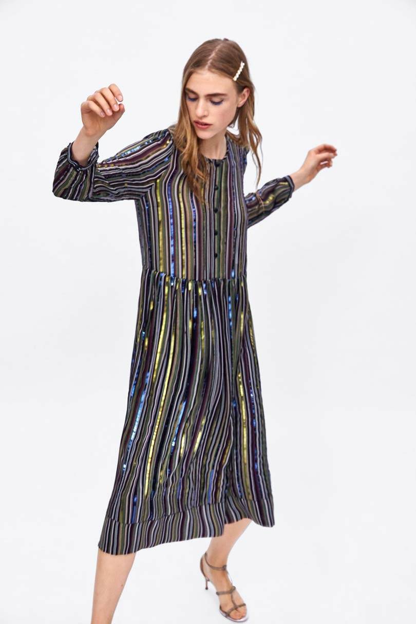 Voor een budgetvriendelijke optie, is er altijd nog Zara. Bij de Inditex-telg vinden we items met verlaagde taille, voorzien van metallic draad. Of Moon Dreamer’s jurk die volledig is bezaaid met pailletten, voorzien van een aantal alziende ogen, en verkrijgbaar is bij Topshop. Is al die symbolische en rijkelijk versierde mode niet jouw ding? Ga dan voor de v-hals jurk tot op de kuit, gemaakt in pittig mosterdgeel, van & Other Stories.