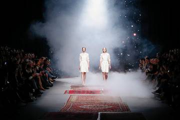 De show opent met een galaxy beeld en veel rook. Vanuit het niets verschijnen twee modellen in crème witte jurkjes, die doen denken aan de jurk die Ilse de Lange droeg bij het Eurovisie Songfestival. Het zijn kuise jurkjes met hoge halzen, voorzien van witte geborduurde bloemen op transparante organza. Het is een verwijzing naar elfjes, laat de ontwerper weten. De prêt-à-porterstukken starten in crème wit, waarbij hoge cols over blousejes worden gedragen en de kenmerkende geborduurde bloemen terugkomen in rokken en transparante sweaters van organza. Een grote eyecatcher is het witte militaire jasje met ‘bont’, een mix van satijnen linten en wol.